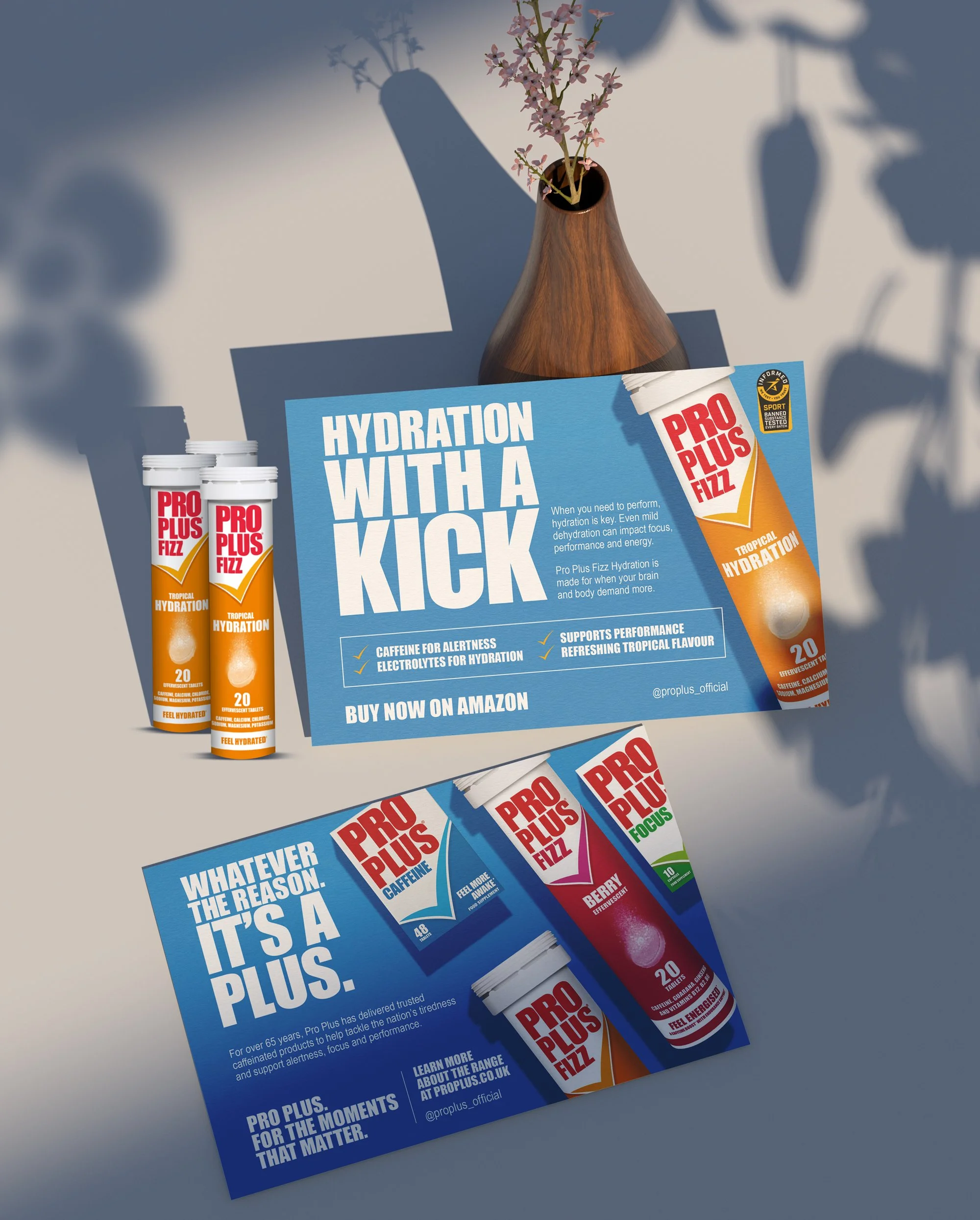 Produce on brand material for the event promotion of Pro Plus’ new tropical hydration effervescent tablets
